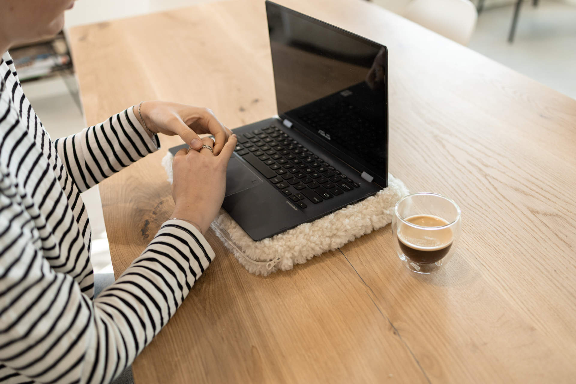 Wat deze laptophoes extra bijzonder maakt, is het gebruik van crossbreed schapenvacht. Dat geeft de hoes een zachte en rijke uitstraling die je direct ziet en voelt. Het materiaal brengt warmte en comfort in een item dat je vaak gebruikt, en maakt van een functionele hoes iets met meer karakter en zachtheid.