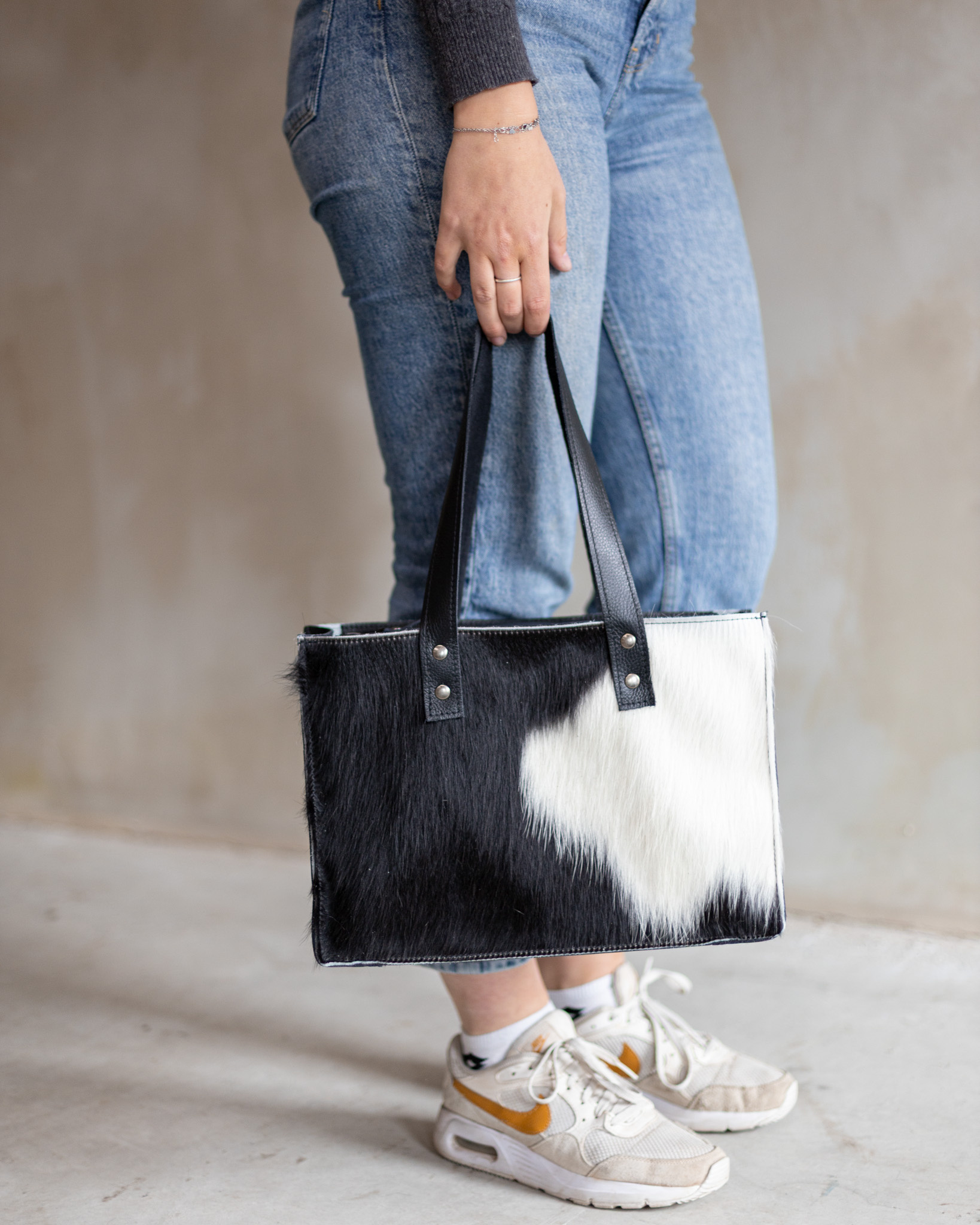 Een mooie handtas is iets dat niet mag ontbreken in je garderobe. Deze tas is gemaakt van hoogwaardig nerfleder + een trendy geprinte koeienhuid. Perfect voor alledaags gebruik, je neemt er al je belangrijke items in mee: portemonnee, telefoon, sleutels, een map & je lunch. Ook ideaal om mee te nemen naar je werk dus! In het afsluitbare binnenzakje bewaar je veilig je pasjes & sleutels.