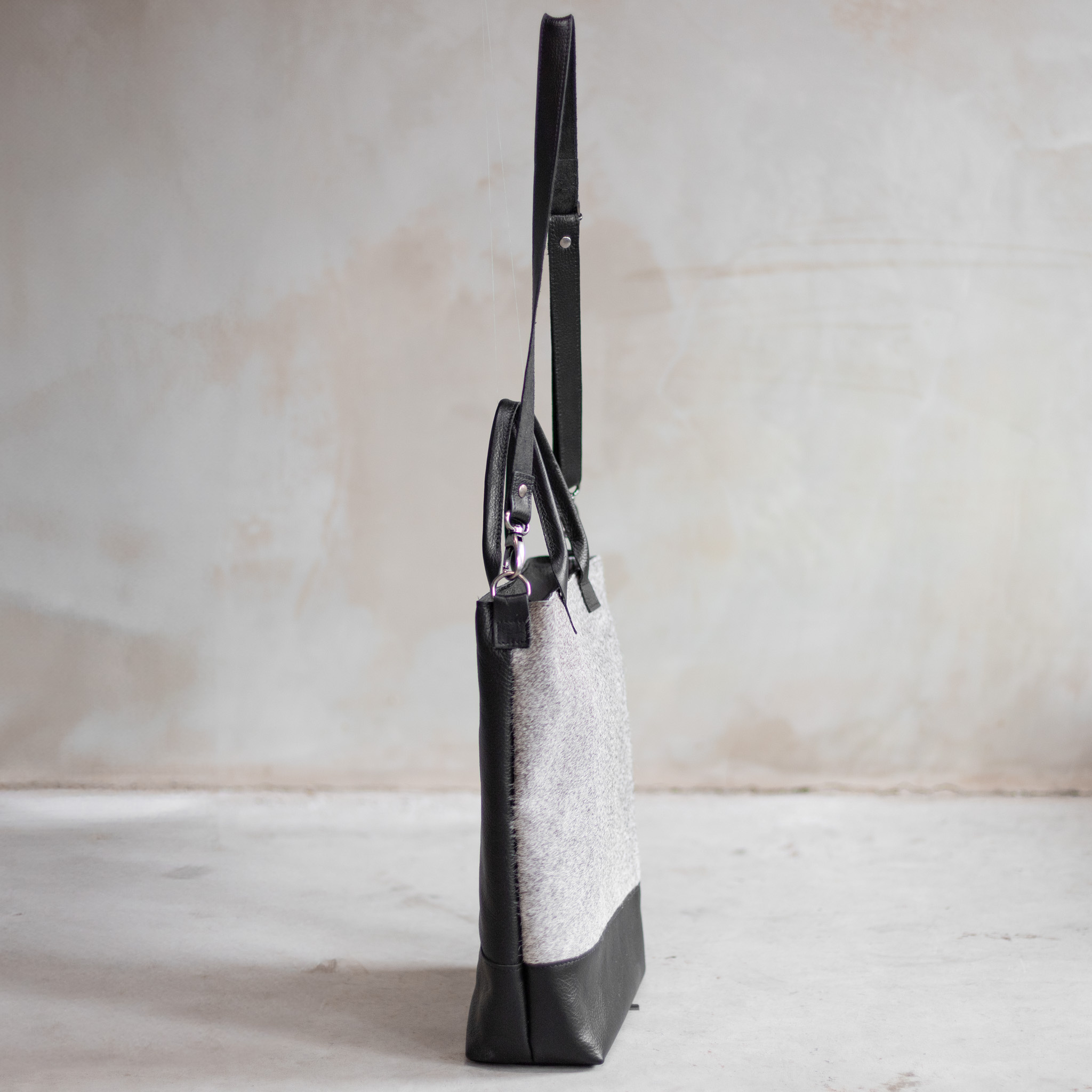 Tas Jolie is een ruime, hippe tas gemaakt van hoogwaardig nerfleder. De combinatie met geprinte koeienhuid geeft de tas een uniek uiterlijk. Ideaal om mee te nemen tijdens een dag weg, naar je werk of je studie! Door het ruime formaat van de tas, neem je er gemakkelijk al je belangrijke spullen in mee: portemonnee, telefoon, sleutels, je lunch, maar ook je laptop past er in! Perfect voor het werk & dagelijks gebruik. Door het handige steekzak in de binnenkant, heb je je pasjes, sleutels en telefoon snel bij de hand.