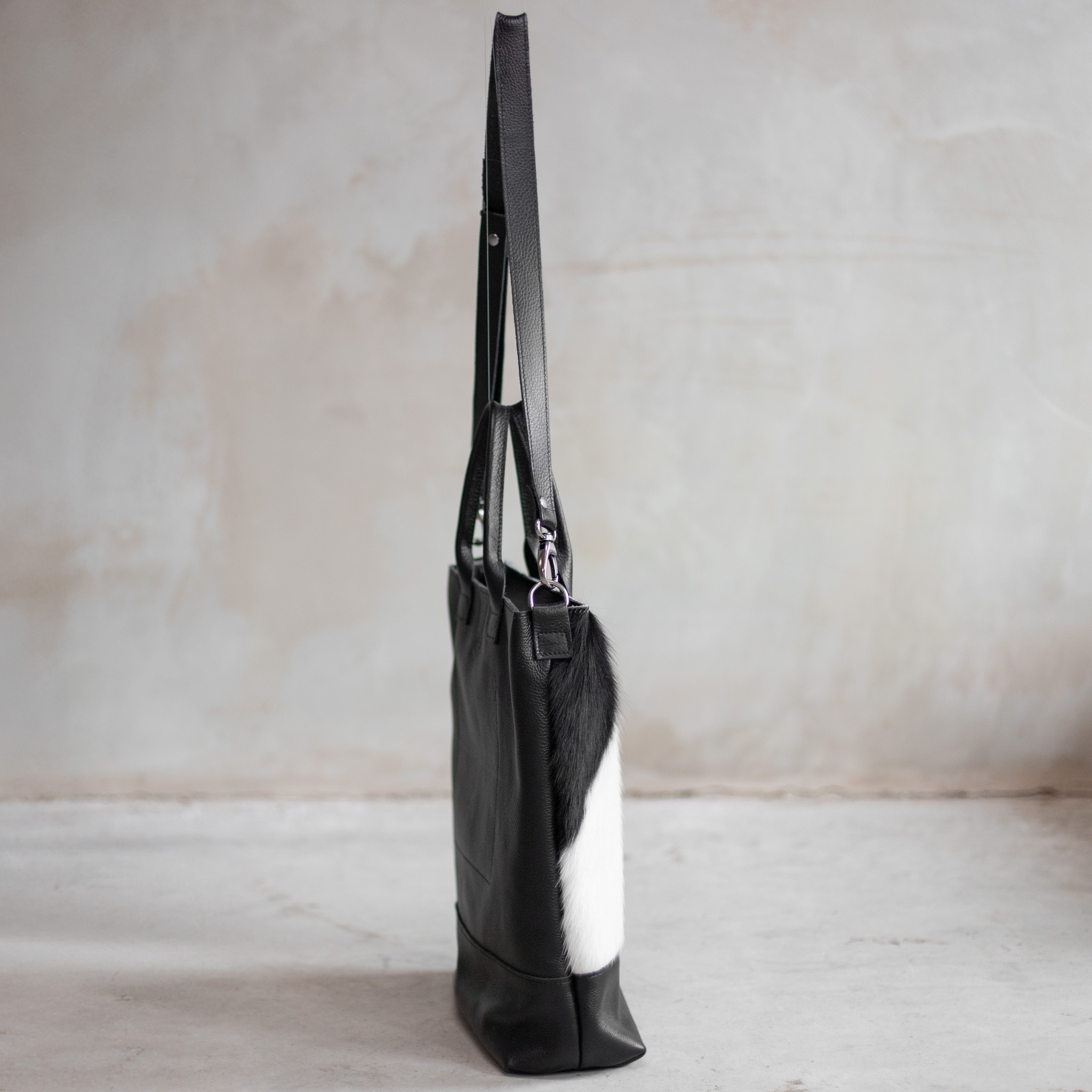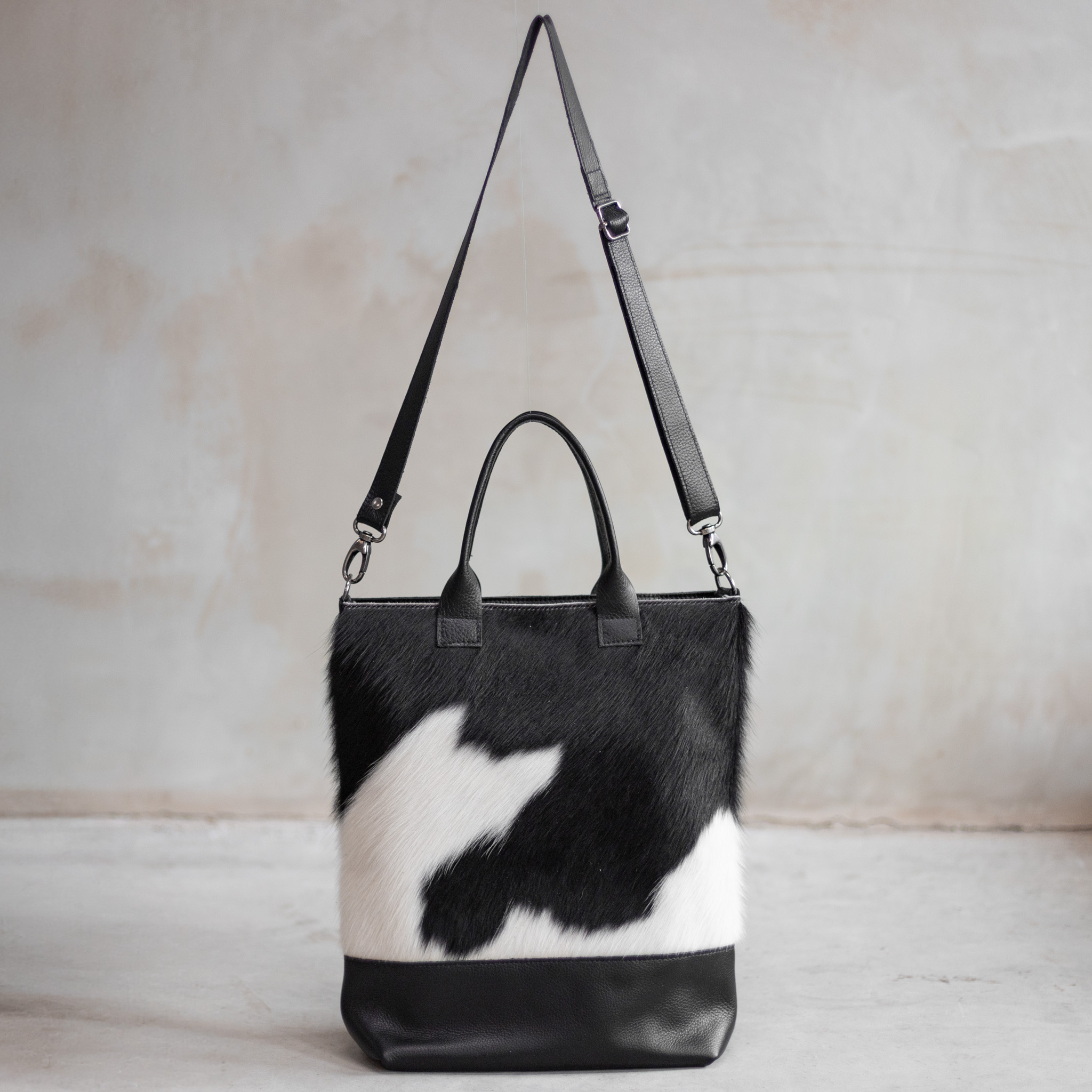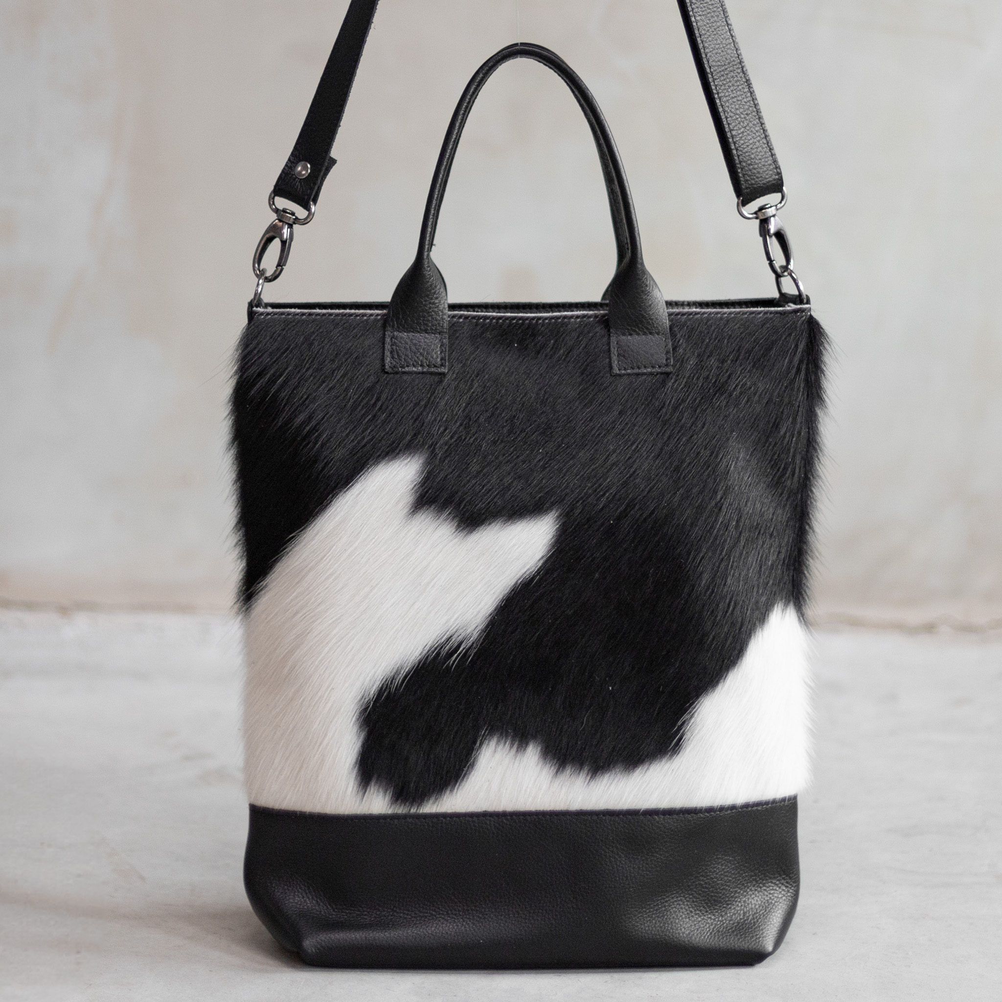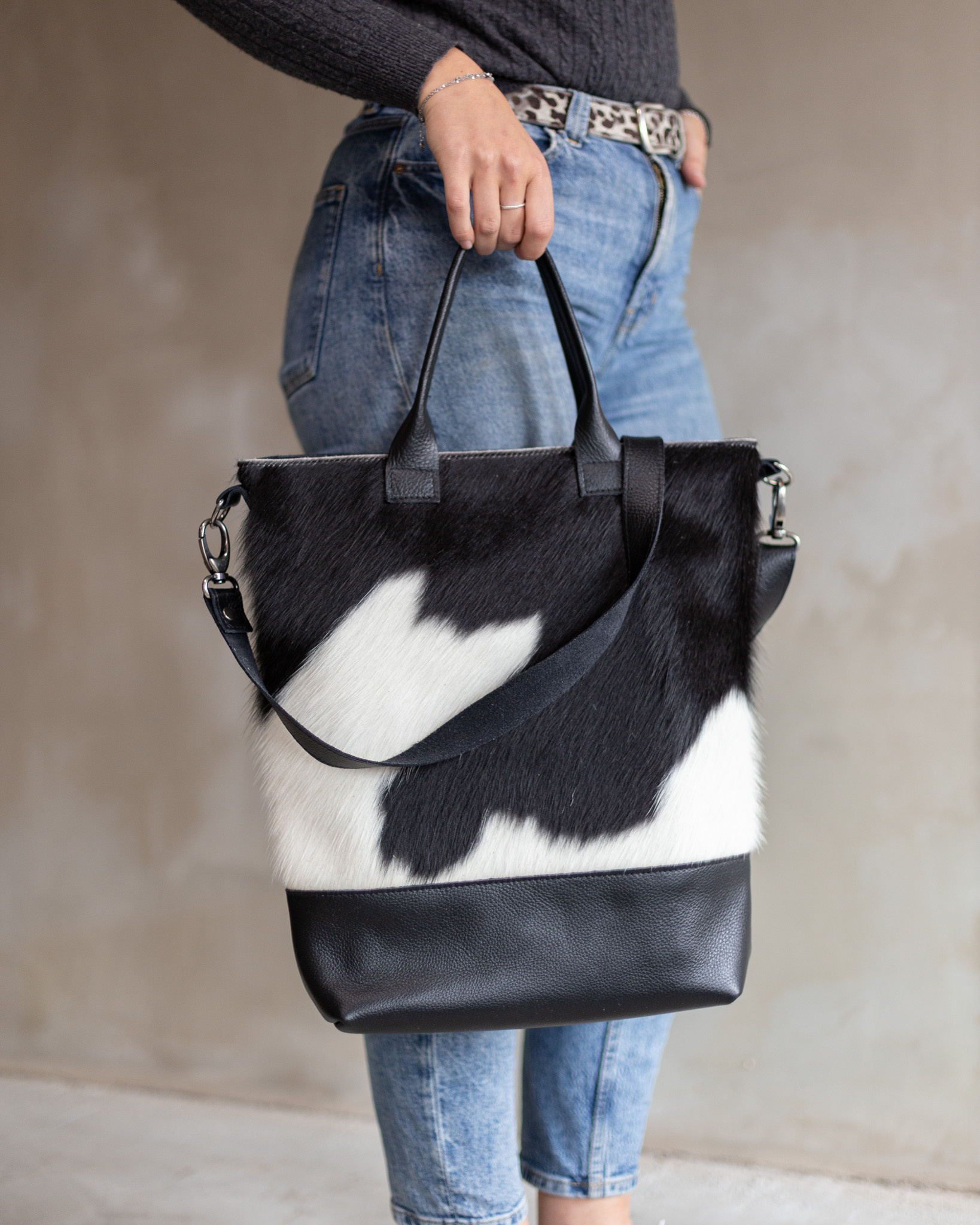 Tas Jolie is een ruime, hippe tas gemaakt van hoogwaardig nerfleder. De combinatie met geprinte koeienhuid geeft de tas een uniek uiterlijk. Ideaal om mee te nemen tijdens een dag weg, naar je werk of je studie! Door het ruime formaat van de tas, neem je er gemakkelijk al je belangrijke spullen in mee: portemonnee, telefoon, sleutels, je lunch, maar ook je laptop past er in! Perfect voor het werk & dagelijks gebruik. Door het handige steekzak in de binnenkant, heb je je pasjes, sleutels en telefoon snel bij de hand.