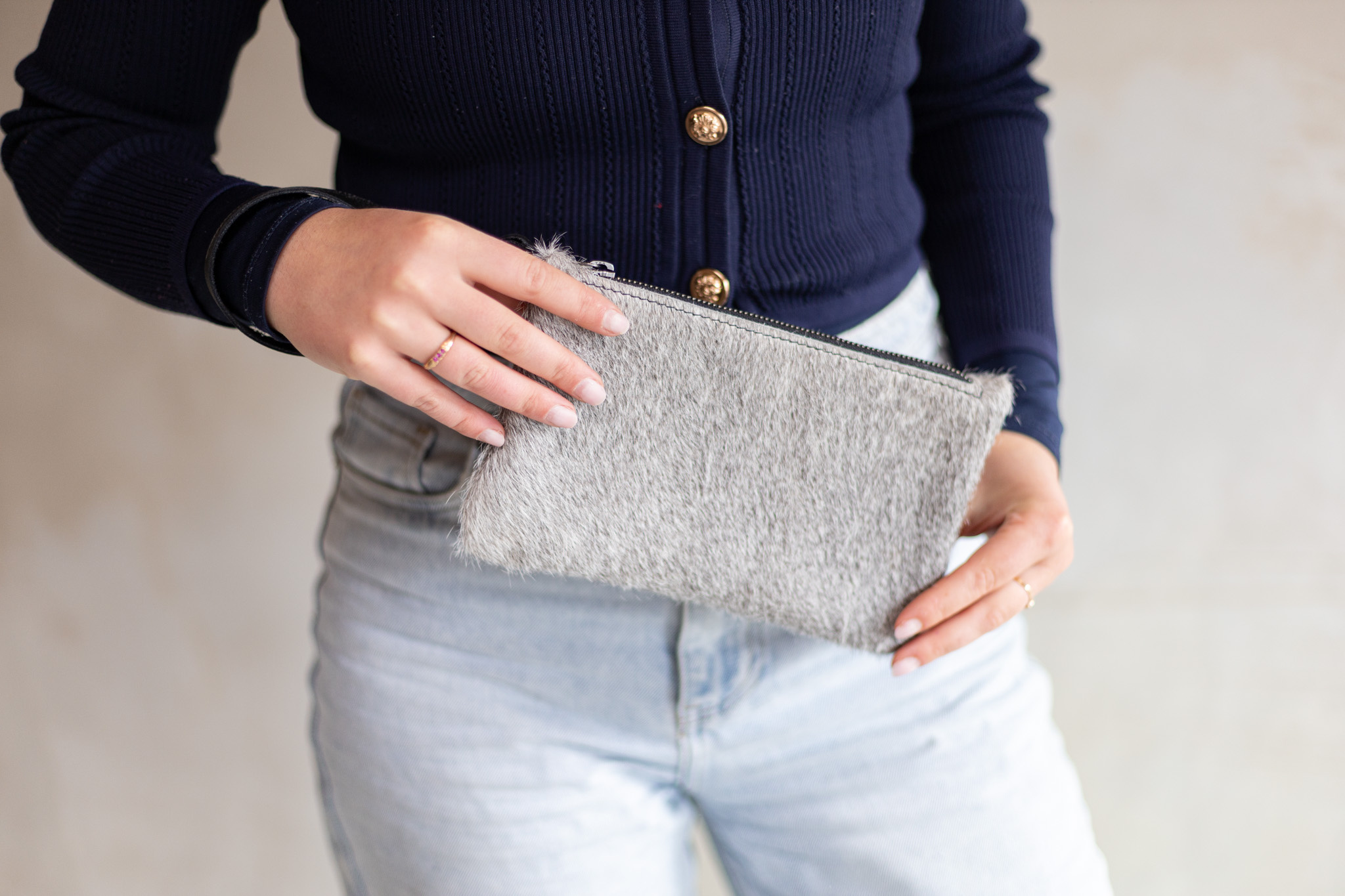 Koeienhuid clutch - Grijs