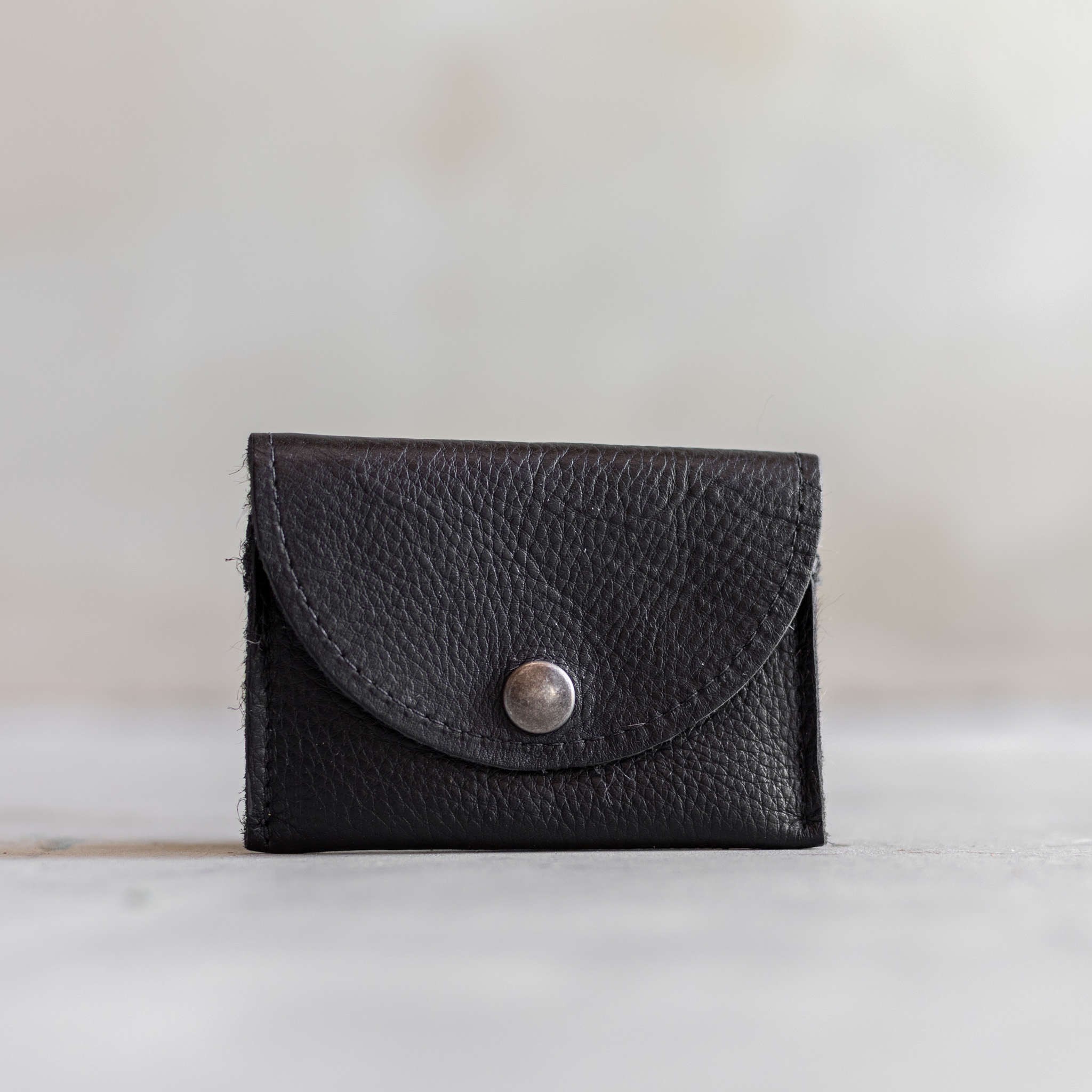 Het portemonneetje sluit met een drukknoop. De afmetingen zijn 9 x 12 cm.