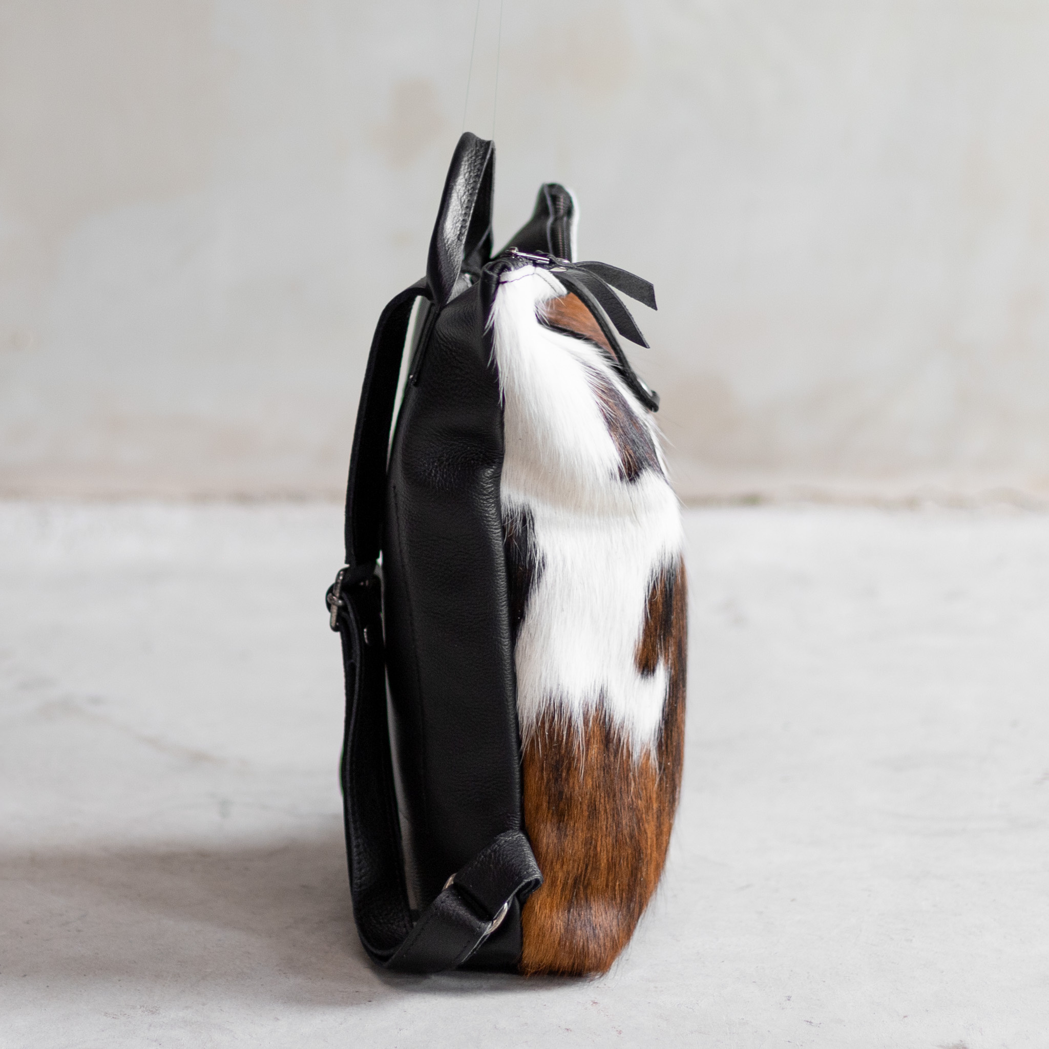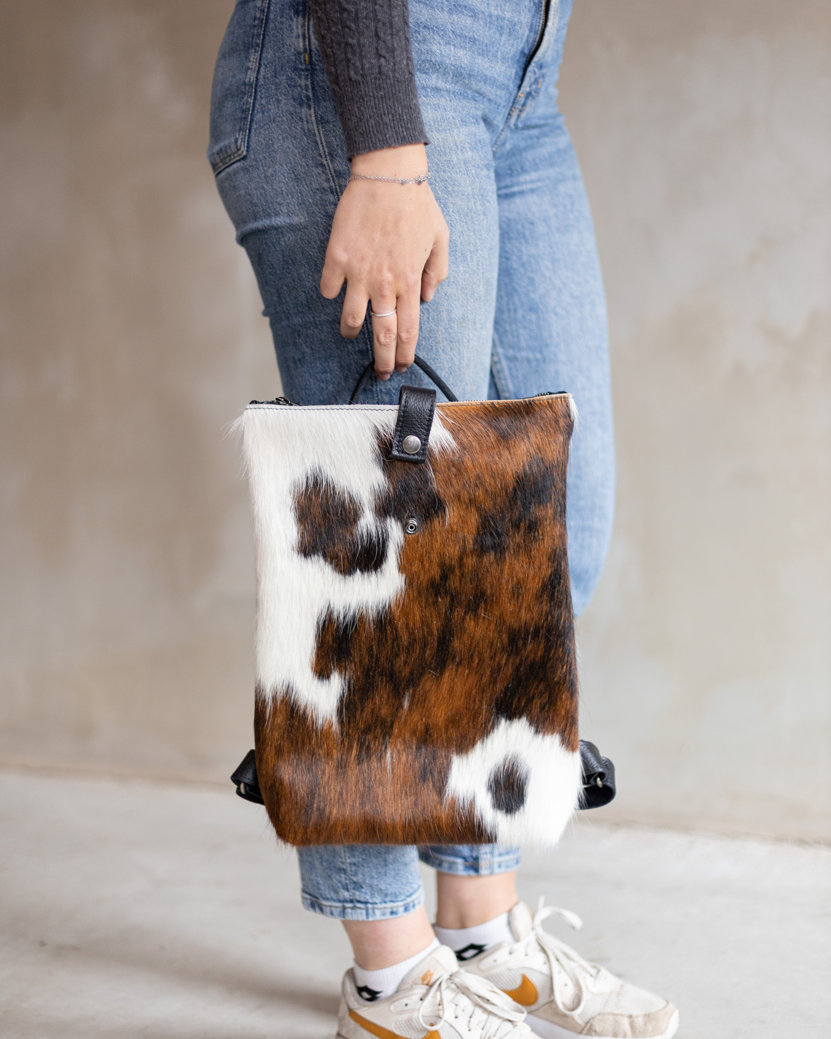 Rugtas Sandra is de ideale tas voor een dagje weg! Het formaat van deze rugtas leent zich perfect om de hele dag mee te nemen. Je neemt in de tas gemakkelijk al je dagelijkse spullen mee, maar de tas is niet te groot of te zwaar om de hele dag mee te zeulen. De tas wordt gemaakt van hoogwaardig nerfleder, gecombineerd met geprinte koeienhuid. Door de keuze voor dit duurzame materiaal, gaat de tas jarenlang mee. Het hippe printje maakt de tas uniek!