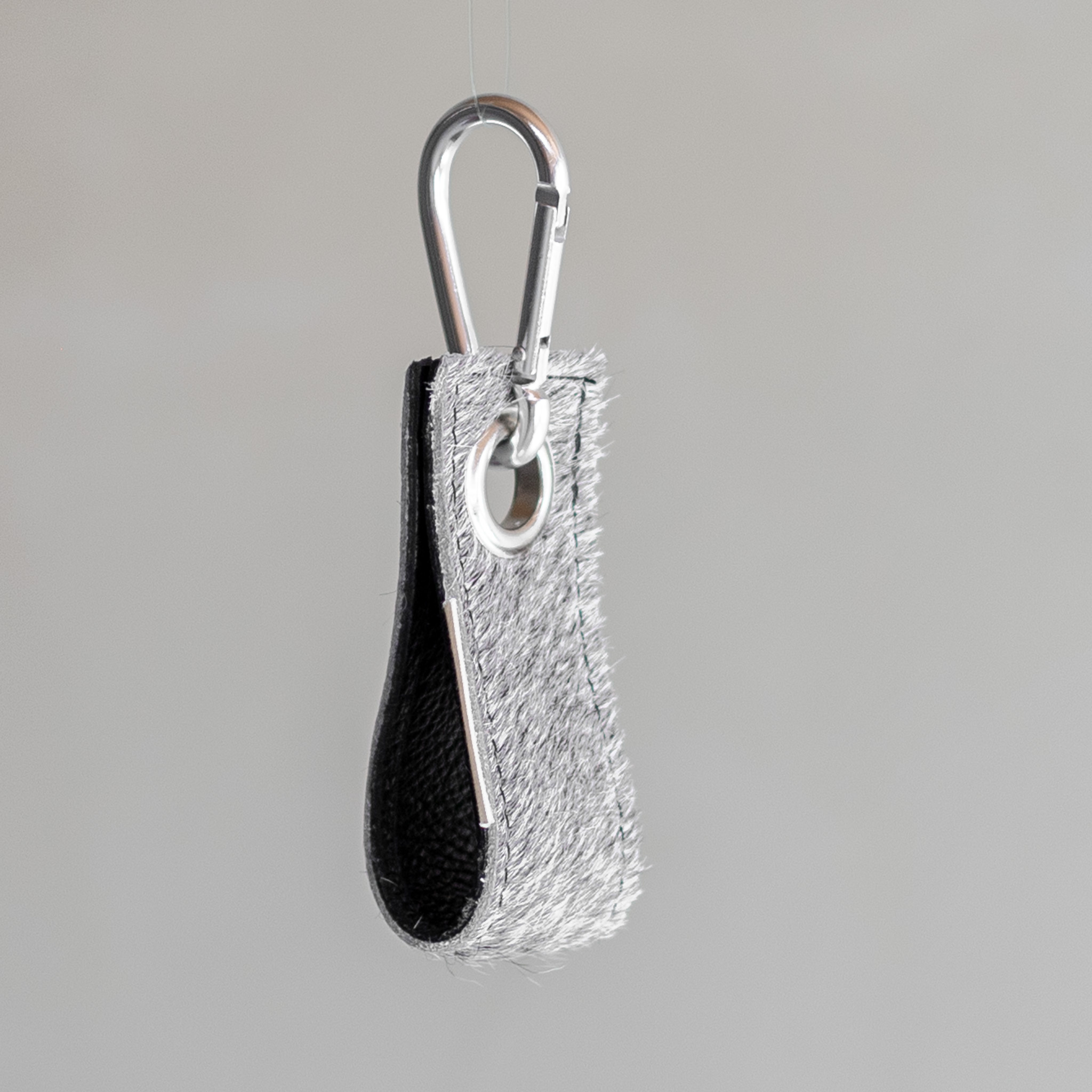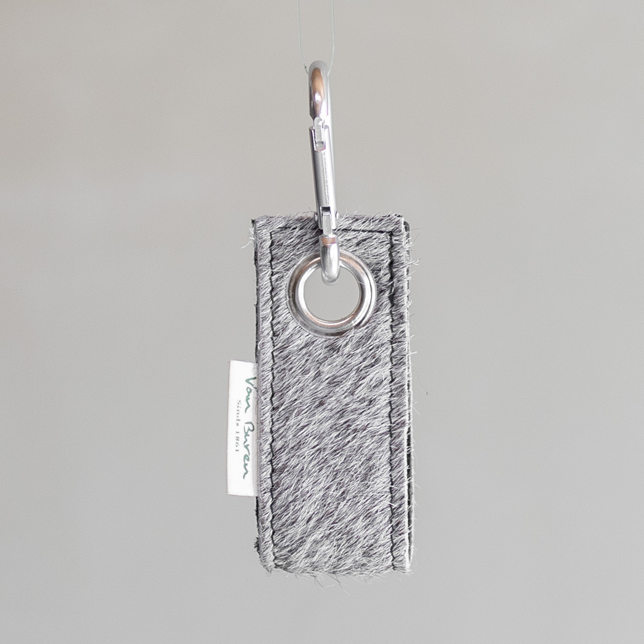 Leuke keycord sleutelhanger gemaakt van beige koeienhuid. De sleutelhanger heeft een karabijnhaak en een sleutelring om al jouw sleutels bij elkaar te houden.