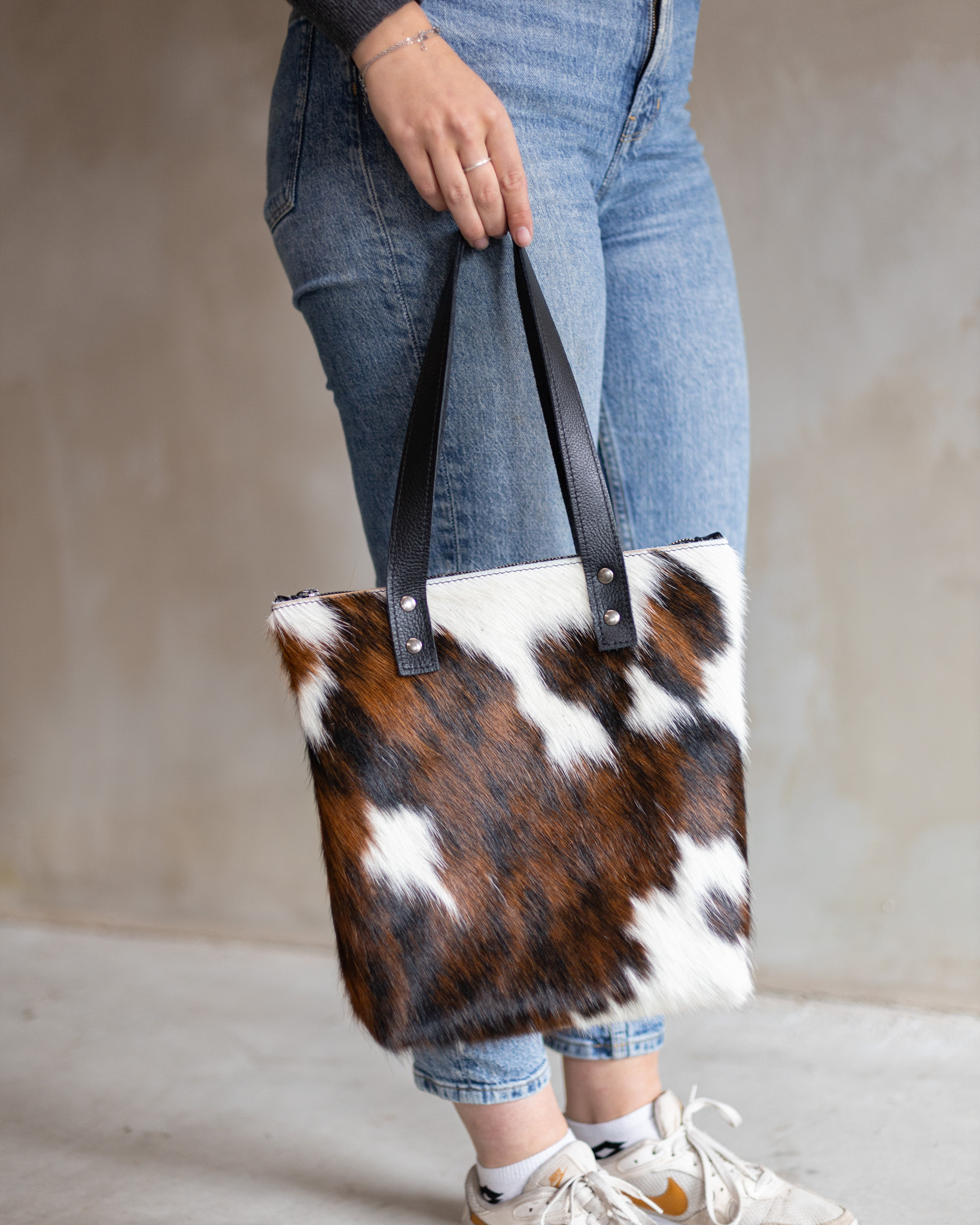 Tas Karlijn is een tijdloze handtas gemaakt van hoogwaardig nerfleder. De voorkant van de handtas is gemaakt van koeienhuid met een print. Deze handtas is perfect om je alledaagse spullen in mee te nemen: portemonnee, telefoon, sleutels & je lunch, het past er gemakkelijk in. Ideaal dus voor dagelijks gebruik & om alles mee te nemen naar je werk. Deze tassen worden handgemaakt in Nederland, waardoor iedere tas uniek is! Duurzaam, eerlijk & ambachtelijk.