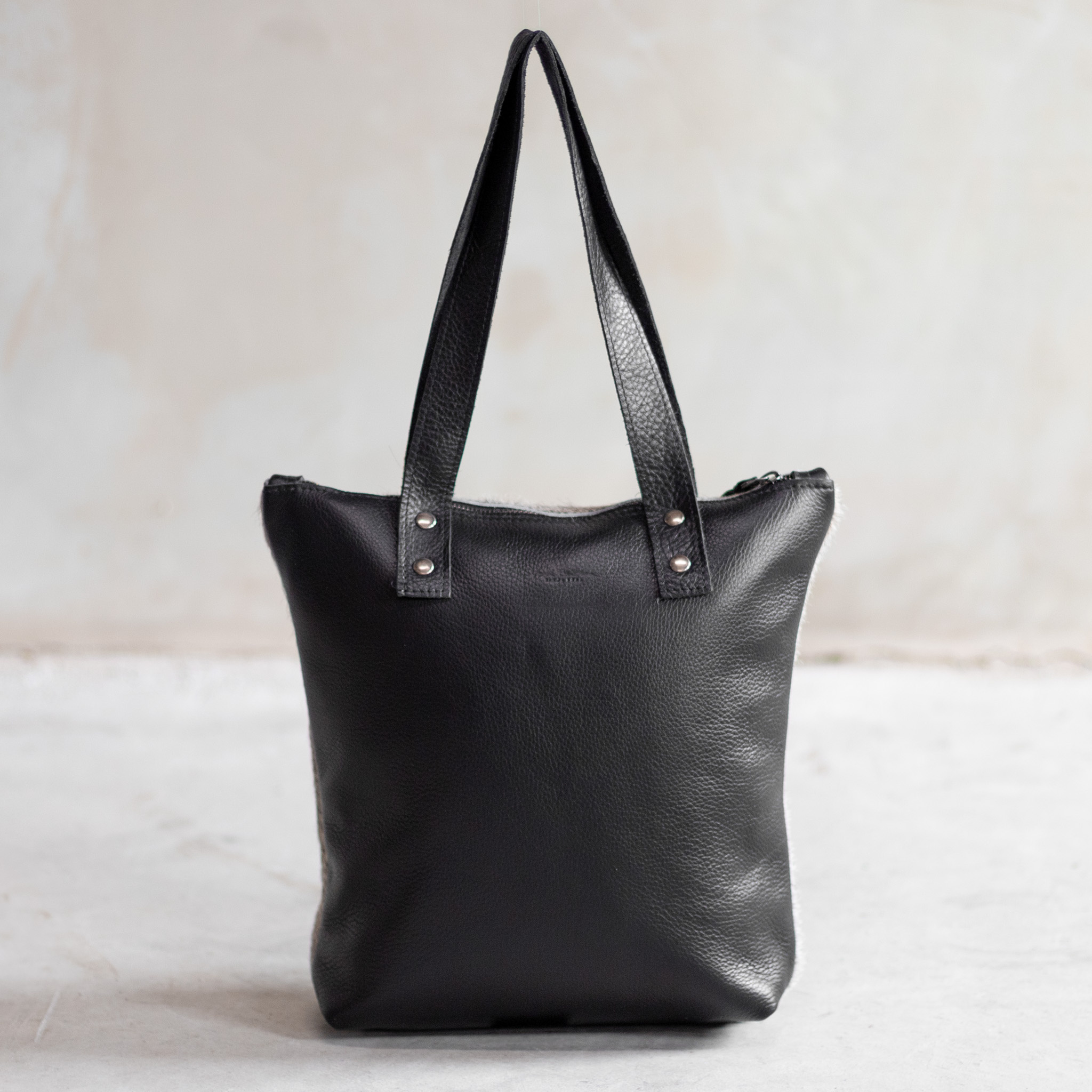 Tas Karlijn is een tijdloze handtas gemaakt van hoogwaardig nerfleder. De voorkant van de handtas is gemaakt van koeienhuid met een print. Deze handtas is perfect om je alledaagse spullen in mee te nemen: portemonnee, telefoon, sleutels & je lunch, het past er gemakkelijk in. Ideaal dus voor dagelijks gebruik & om alles mee te nemen naar je werk. Deze tassen worden handgemaakt in Nederland, waardoor iedere tas uniek is! Duurzaam, eerlijk & ambachtelijk.