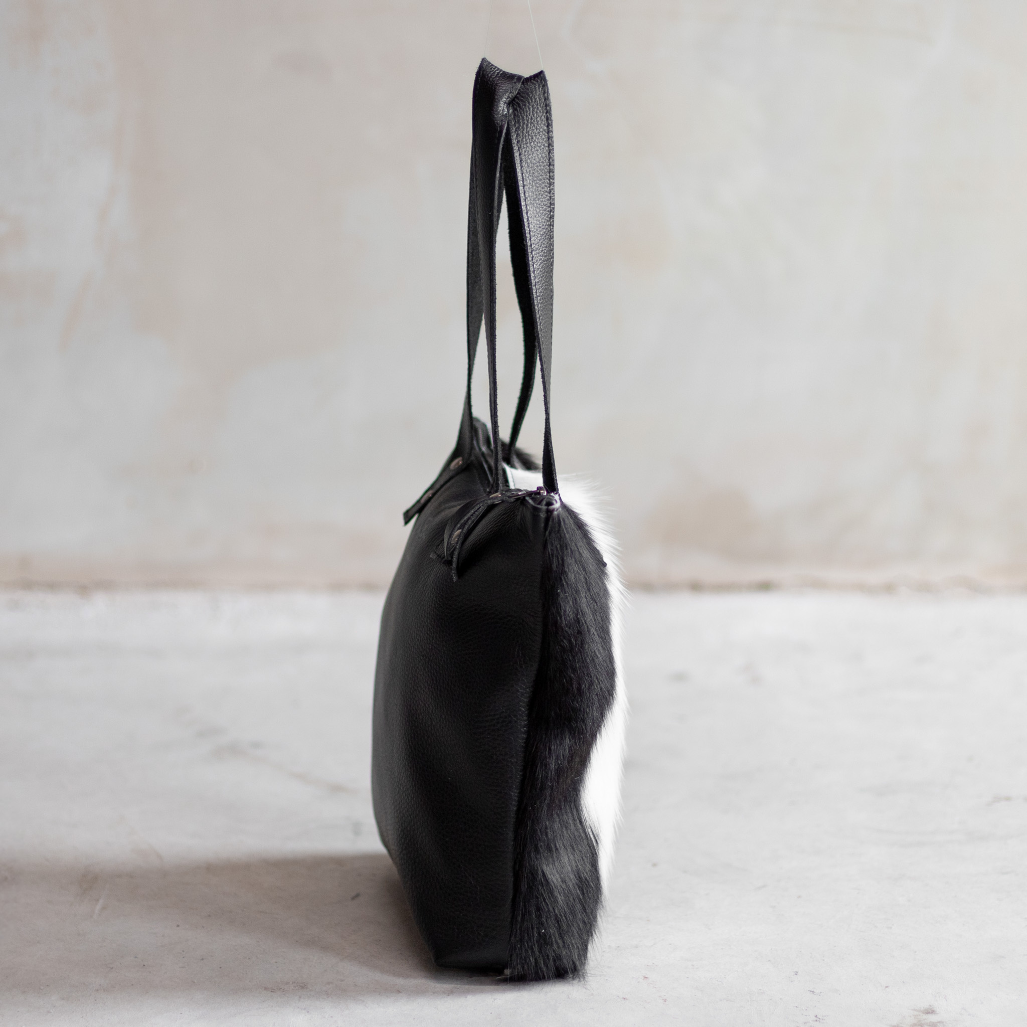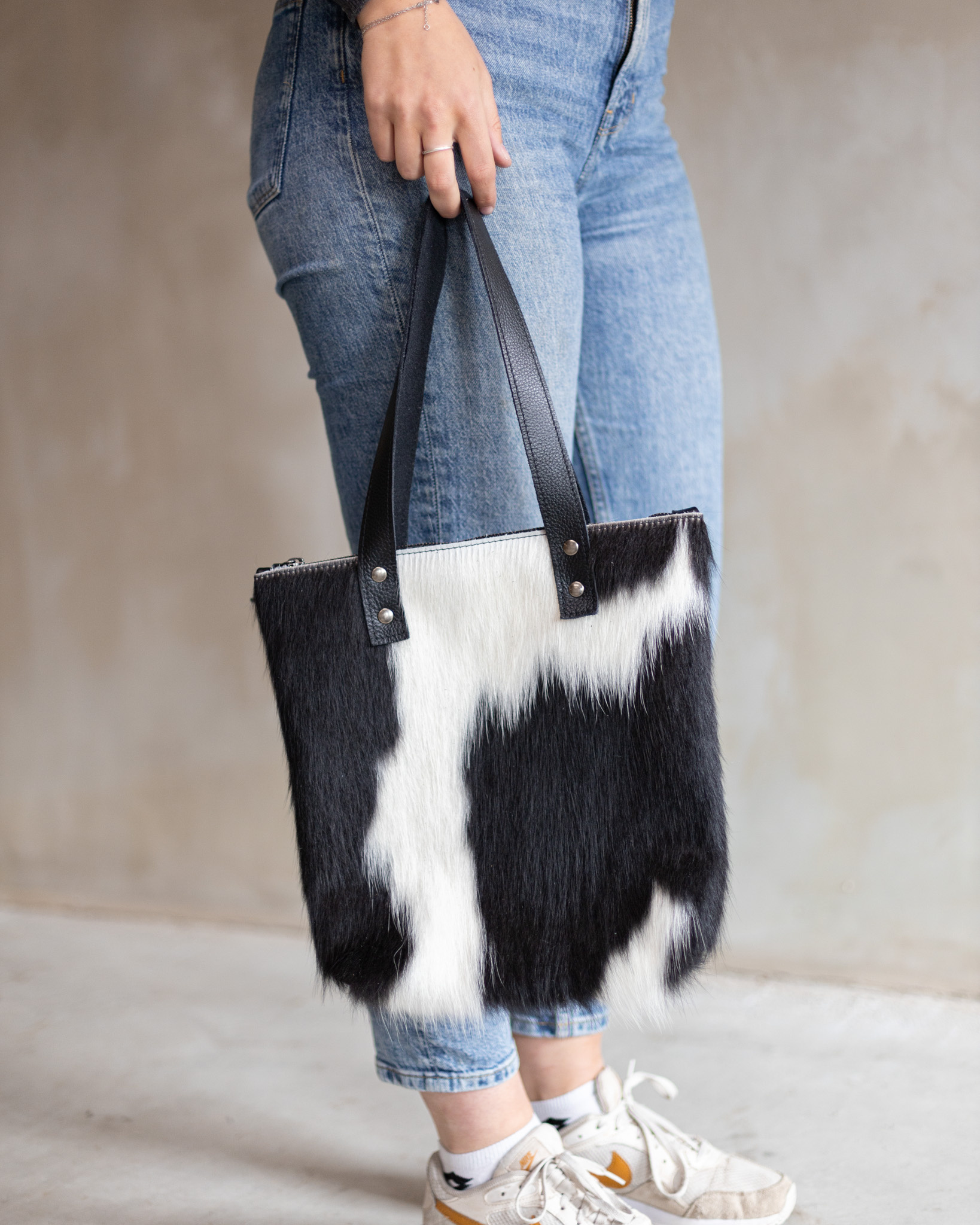 Tas Karlijn is een tijdloze handtas gemaakt van hoogwaardig nerfleder. De voorkant van de handtas is gemaakt van koeienhuid met een print. Deze handtas is perfect om je alledaagse spullen in mee te nemen: portemonnee, telefoon, sleutels & je lunch, het past er gemakkelijk in. Ideaal dus voor dagelijks gebruik & om alles mee te nemen naar je werk. Deze tassen worden handgemaakt in Nederland, waardoor iedere tas uniek is! Duurzaam, eerlijk & ambachtelijk.