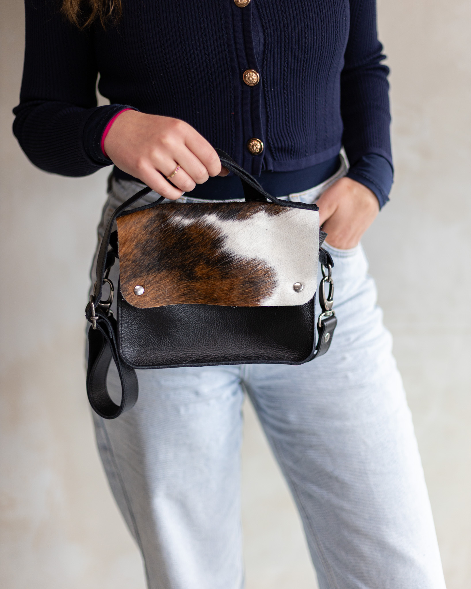 Tas Maren is het perfecte tasje voor een dagje weg, avondje uit of als alledaags tasje. Het tasje is gemaakt van hoogwaardig nerfleder, waardoor deze jarenlang mooi blijft. De combinatie met geprinte koeienhuid geeft het tasje een unieke look. Hij wordt handgemaakt in Nederland, waardoor ieder tasje ook écht uniek is! Duurzaam, eerlijk & ambachtelijk.