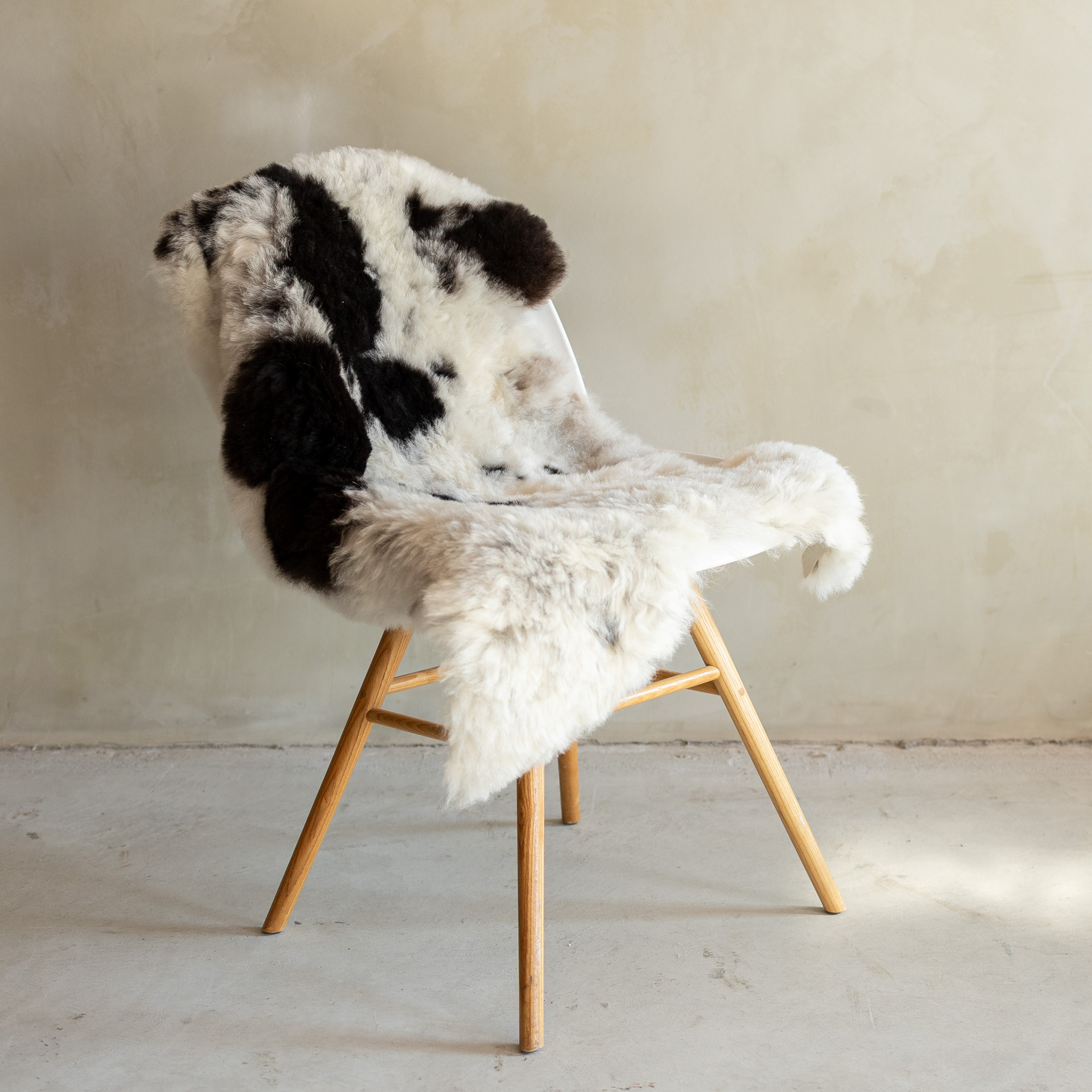 Dit specifieke item is apart gefotografeerd om een exacte match met de levering te garanderen. De foto's tonen de specifieke tekening en vorm van deze vacht onder SKU SVV-700. Omdat geen twee bonte vachten gelijk zijn, biedt deze individuele registratie de zekerheid dat u het afgebeelde product ontvangt. De geschoren afwerking geeft een moderne draai aan de klassieke IJslandse vacht, terwijl de functionele eigenschappen behouden blijven.