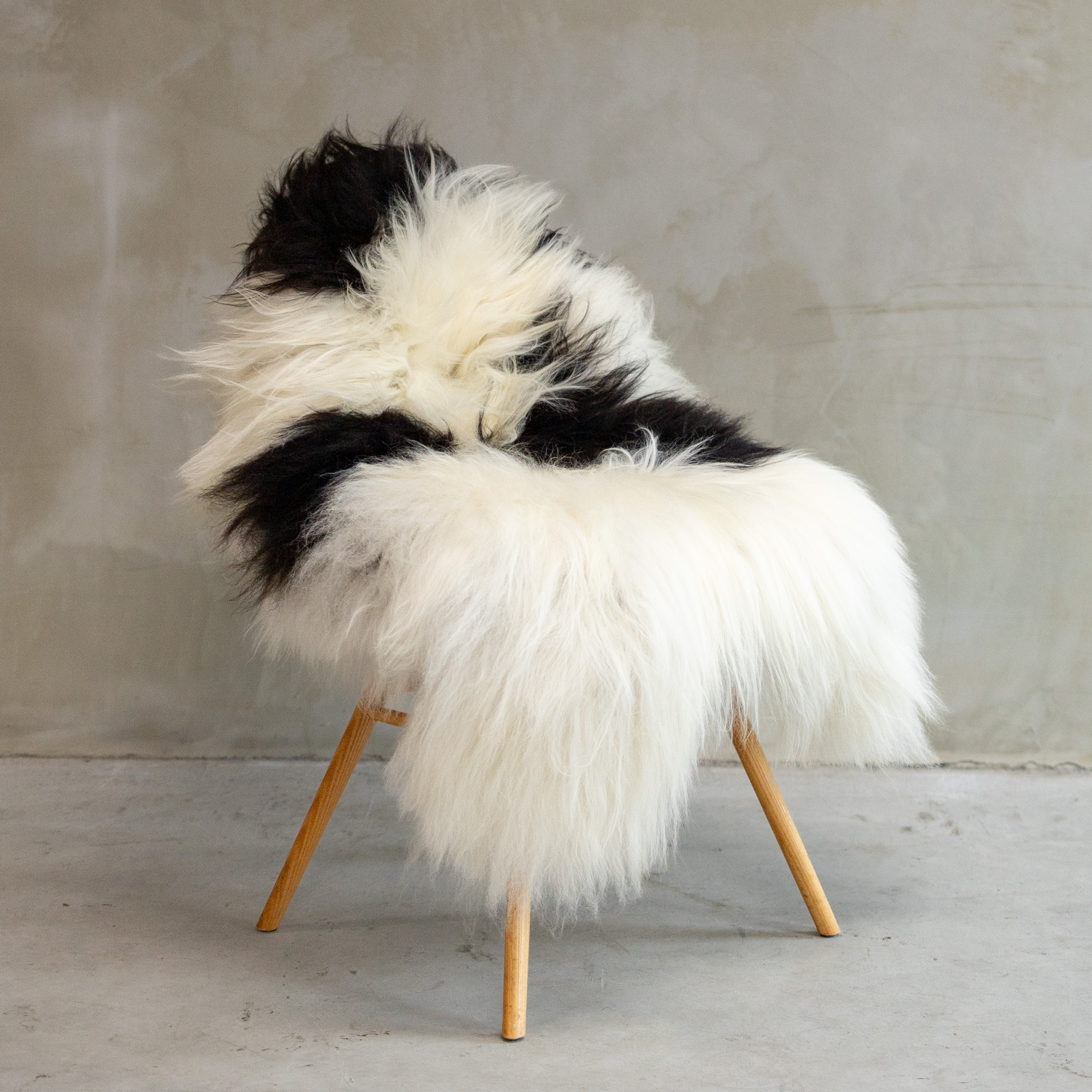 De wol van de SVV-616 is typisch IJslands: lang, glanzend en heerlijk zacht. De zwartbonte kleur is volledig natuurlijk en geeft elke kamer een unieke touch. Dit schapenvacht is niet alleen mooi, maar ook functioneel dankzij de hoge isolatiewaarde en het zelfreinigende vermogen van de wol. Een duurzame aanwinst voor elk type woning.