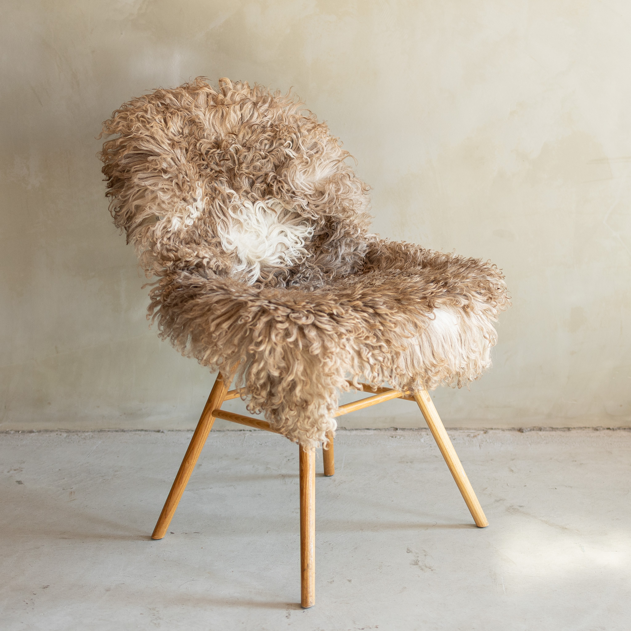 Dit specifieke exemplaar met nummer SVV-727 is apart gefotografeerd. De foto’s tonen exact de vacht die wordt geleverd, inclusief de individuele vorm en de verdeling van de krullende wol. Bij natuurproducten is geen enkel item identiek; door deze individuele fotografie weet u vooraf precies welk exemplaar u ontvangt. De vacht heeft een kwalitatieve inplant en een hoogwaardige afwerking. Het is een functioneel en duurzaam natuurproduct dat zijn eigenschappen behoudt.