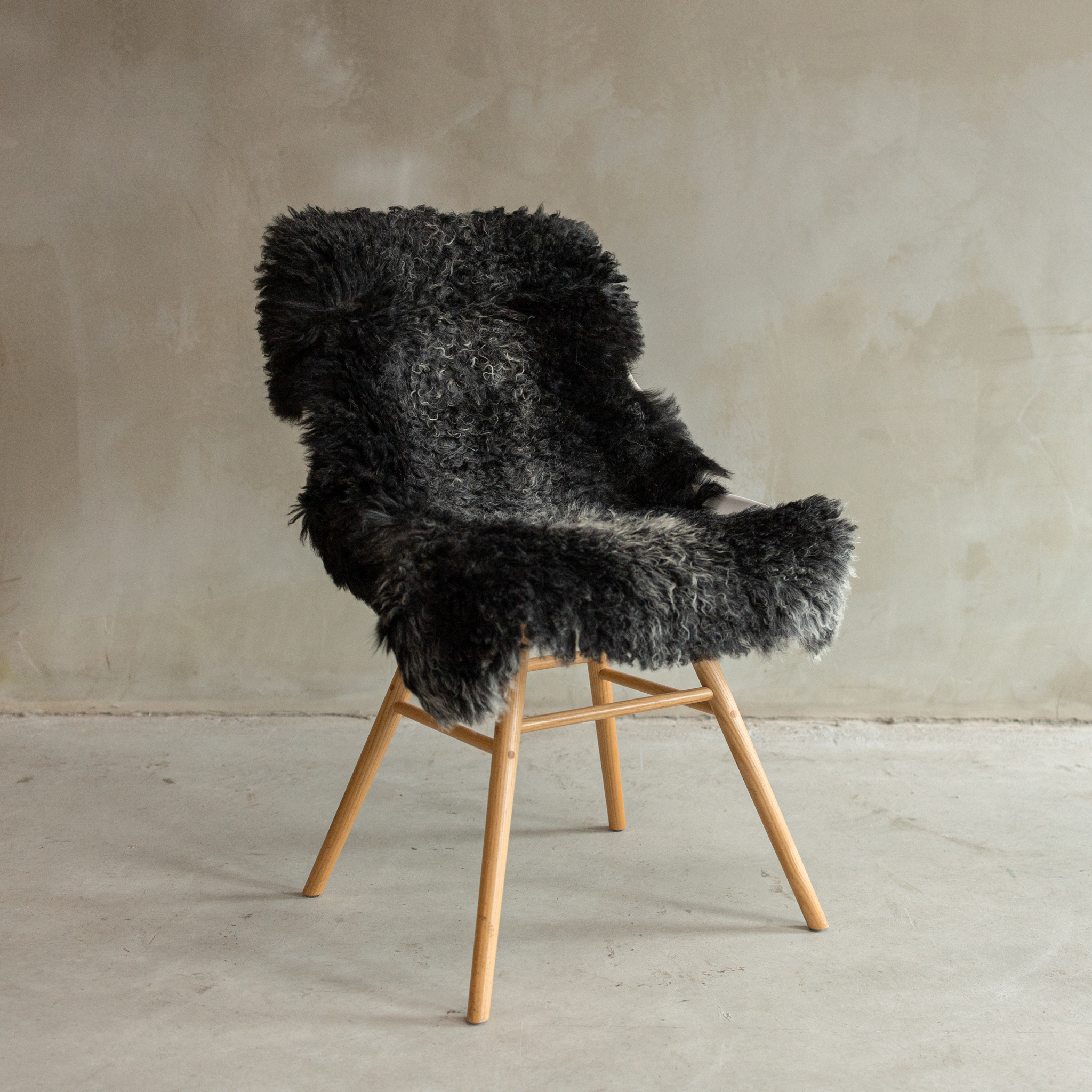 De natuurlijke grijze kleur van dit Tibetaanse vacht heeft een moderne, rustige uitstraling die perfect past in een minimalistisch interieur.
