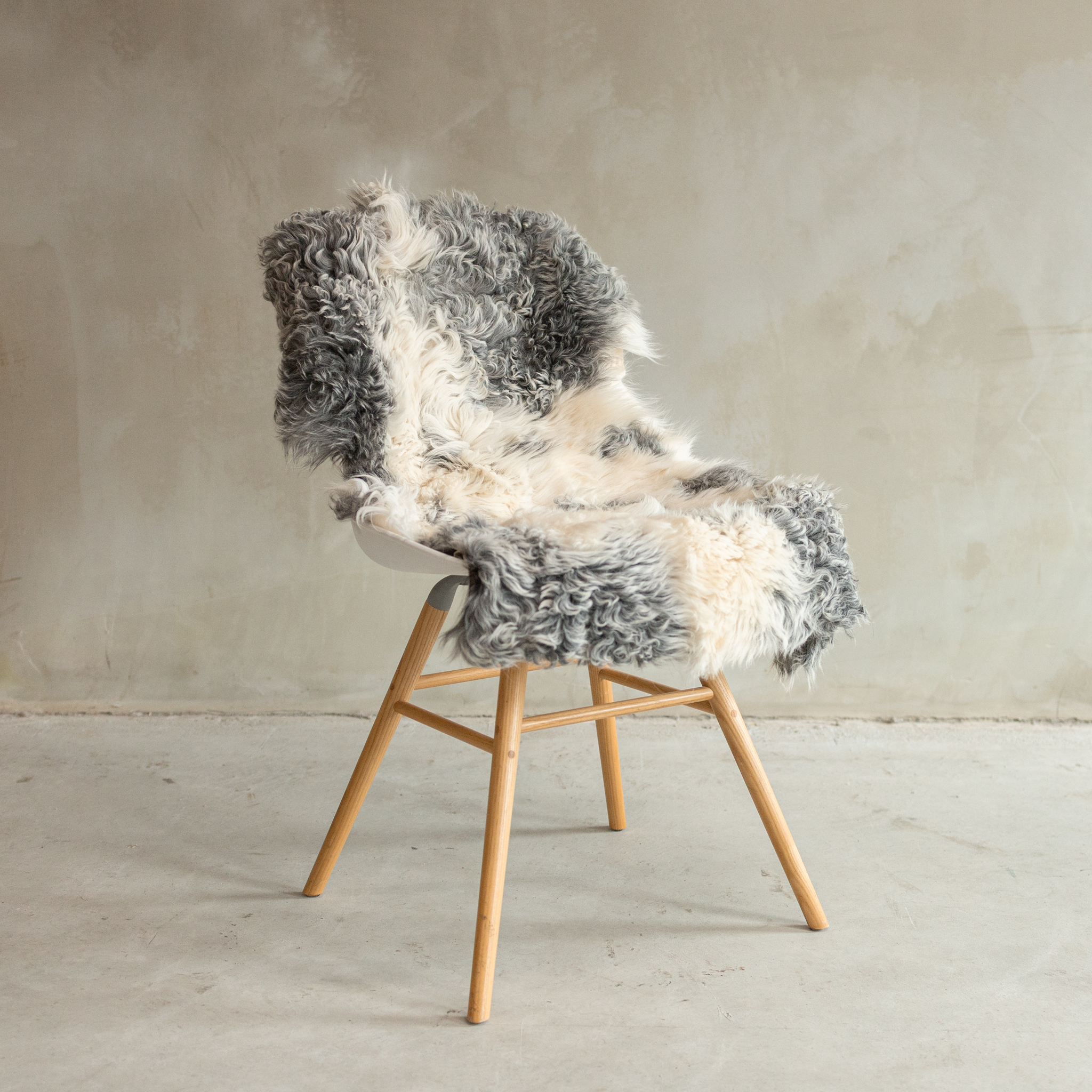 De grijze tinten zijn 100% natuurlijk en geven elk vacht zijn eigen, unieke patroon. Perfect voor wie houdt van subtiele luxe.