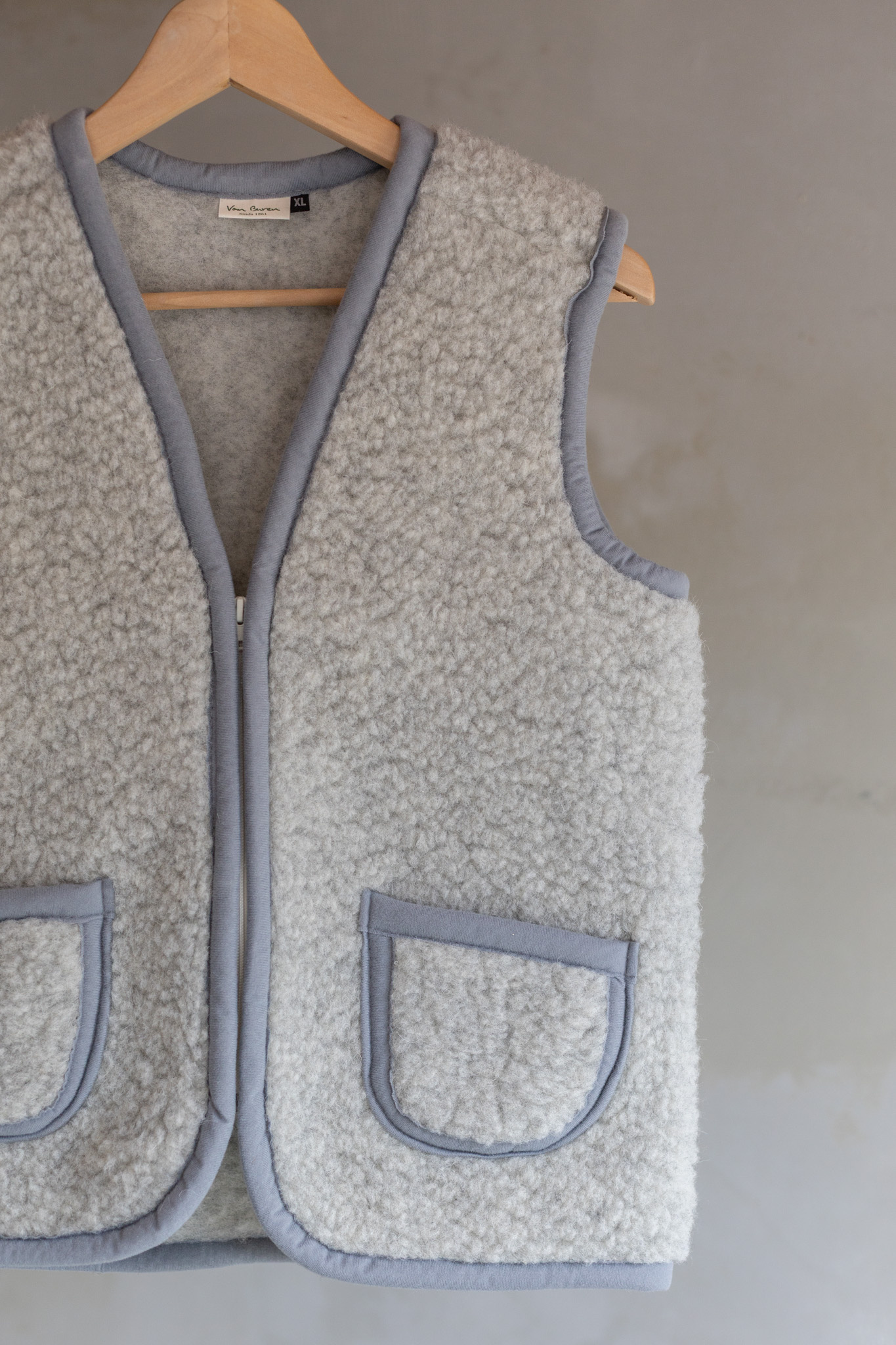 De bodywarmers zijn beschikbaar in 3 verschillende kleuren: beige, off-white en grijs